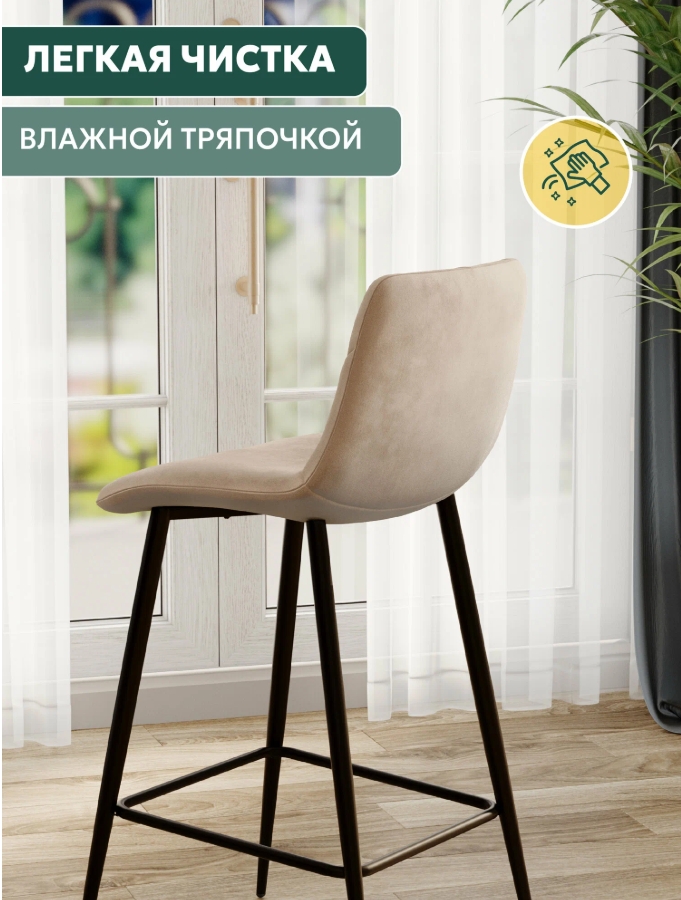 Наш полу барный Стул имеет трапециевидную форму, что придает ему современный и модный вид. Мягкое сиденье и мягкая спинка обеспечивают максимальный комфорт при использовании. Обивка выполнена из велюра, который приятен на ощупь и легко чистится.